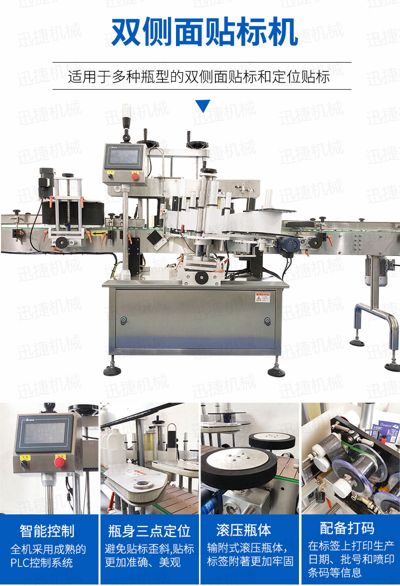 全機采用的技術(shù),微電腦-PLC-電子光纖傳感器控制系統(tǒng),使整機運行穩(wěn)定、高速; 操作系統(tǒng)采用操作界面控制,操作簡便、實用、效率高,并有產(chǎn)量記數(shù)功能; 技術(shù)的速度快且穩(wěn)定; 適用范圍大,可用于各種尺寸的圓形瓶貼標(biāo); 輸附式滾壓瓶體,使標(biāo)簽附著更加牢固; 前后段可選連線使用。