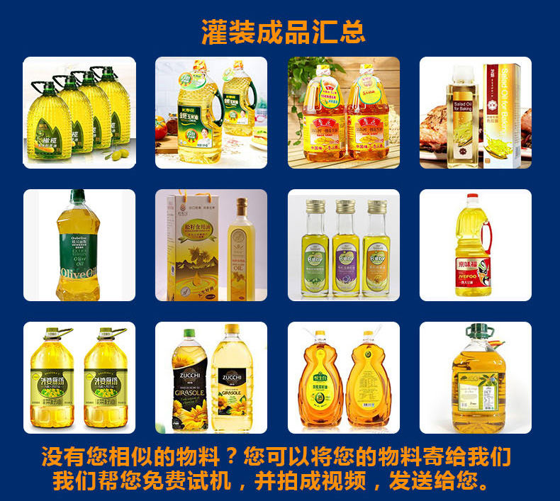 并且食用油灌裝機采用316L不銹鋼精制防滴漏灌裝頭,通過性好,內(nèi)外精拋,是真正的食品級,食用油灌裝機的獨特灌裝頭設計及真空回吸系統(tǒng),確保灌裝過程無殘油滴漏,快慢雙速灌裝,灌裝速度可調(diào),杜絕溢瓶現(xiàn)象。該機采用動力灌裝,無需配裝高位罐,簡化了安裝工序,提高了灌裝效率。履帶式壓蓋機,穩(wěn)定無噪音,無空壓現(xiàn)象。觸摸屏界面友好,操作簡捷,SIEMENS PLC控制系統(tǒng),運算速度快,性能穩(wěn)定,品質(zhì)卓越。電、氣件均采用精品元件,所以確保了整機運作穩(wěn)定,故障率低,讓您安心的使用食用油灌裝機,實現(xiàn)快速生產(chǎn)。